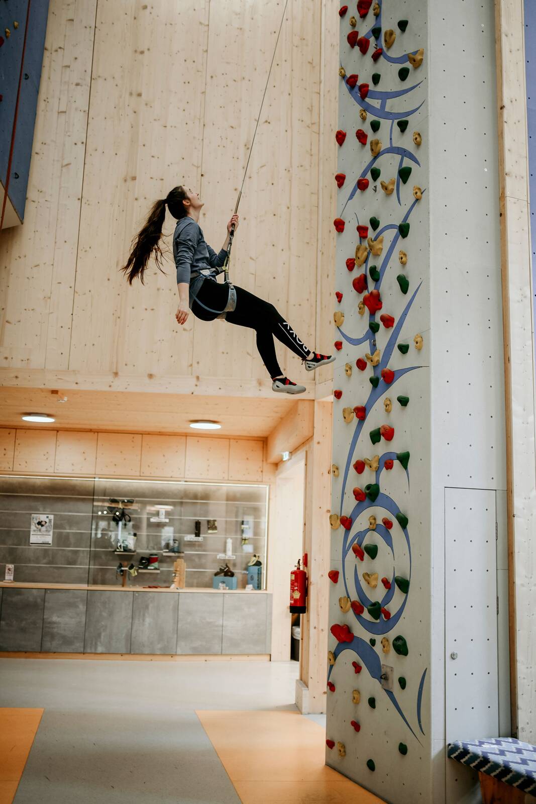 Mit diesen automatischen Sicherungsanlagen ist das Klettern ohne Kletterpartner und ohne Sicherungserfahrung möglich. Das Seil wird mithilfe von Karabinern in den Klettergurt eingehängt und schon kann es losgehen - bis 16m nach oben.